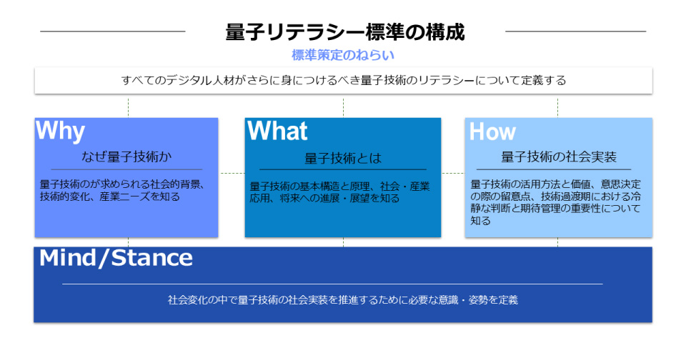 | 量子リテラシー標準(QSS-L) | すべてのデジタル人材 | 量子技術のリテラシー、学習項目、学習到達度 |